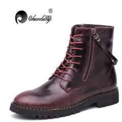 冬季潮靴男高帮真皮皮靴英伦复古马丁靴 | 蝉狼男工装靴真皮男靴子