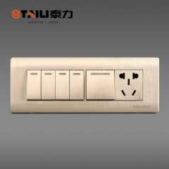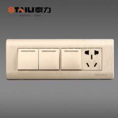 【泰力正品】开关插座118型三开一插拉丝金墙壁插座 | 电源插座