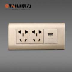 【泰力正品】开关插座拉丝金墙壁插座 | 二插加USB插座 | 电源插座