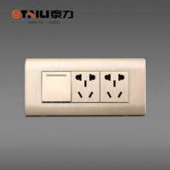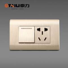【泰力正品】开关插座118型拉丝金墙壁插座 | 一开一插双控开关插座