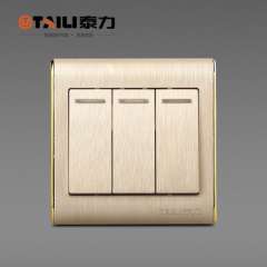【泰力正品】开关插座86拉丝金墙壁开关 | 跷板开关 | 三开双控开