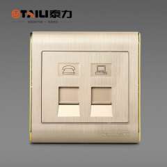 【泰力正品】开关插座86型拉丝金电话电脑插座 | 电源插座