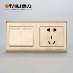 【泰力正品】开关插座 | 86型二位开关五孔 | 二开双控5孔香槟色面板