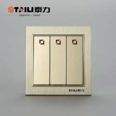 【泰力正品】开关插座86三开LED指示灯开关 | 墙壁开关 | 淡金开关