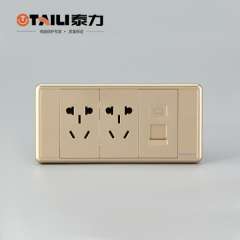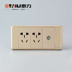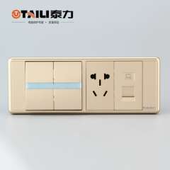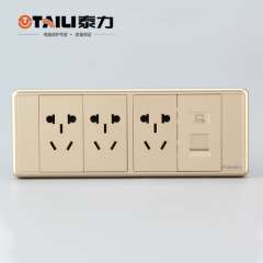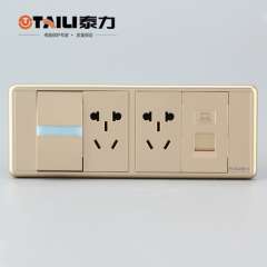 【泰力正品】批发118型插座面板 | 家用带网线三插电脑电源 | 香槟金