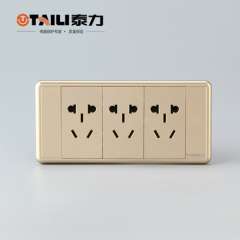 【泰力正品】三位九孔插座 | 118型开关插座香槟金多功能墙壁插座