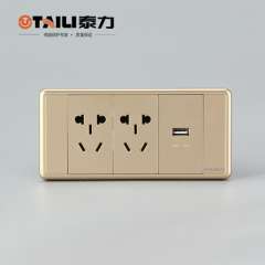 【泰力正品】墙壁开关插座 | 118型两位五孔带USB充电插座香槟金