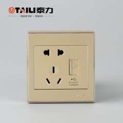 【泰力正品】开关插座香槟色五孔usb墙壁插座 | 安全耐用面板插座
