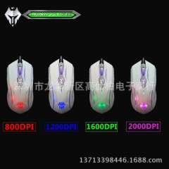 狼途G2侦察兵四色呼吸灯发光白色网吧游戏LOL CF游戏鼠标电脑配件