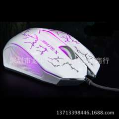 沃野V12 USB裂纹七彩发光呼吸灯LOL游戏有线鼠标一件代发电脑配件