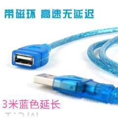 厂家直销 | 3米蓝色USB 2.0延长线 | USB延长线 | USB加长线 | 全铜磁环