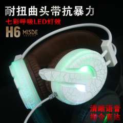 梅赛德H6裂纹7色呼吸灯发光耳机网吧网咖电脑游戏头戴式背光耳机