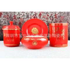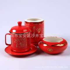 中国红瓷将军杯陶瓷骨瓷办公茶水盖杯子节日庆典礼品赠品定制logo