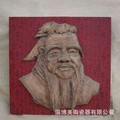 陶塑红陶孔子像 | 浮雕壁挂 | 广场公司家居摆件 | 纯手工陶瓷大师作品