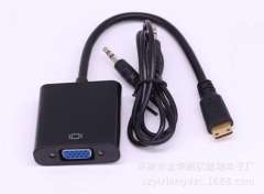 厂家批发mini hdmi to vga转接线带音频线 | 迷你hdmi转vga带音频