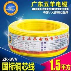 批发广东五羊电线电缆阻燃ZR-BVV1.5平方家装电线 | 双皮单支