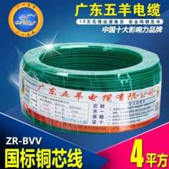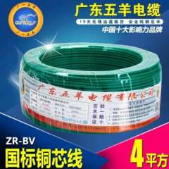 批发广东五羊电线电缆阻燃ZR-BV4平方家装电线 | 单皮单支
