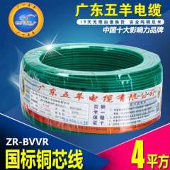 批发广东五羊电线电缆阻燃ZR-BVV4平方铜芯家装线 | 双皮单支