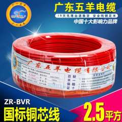 批发广东五羊电线电缆阻燃ZR-BV2.5平方家装电线 | 单皮单支