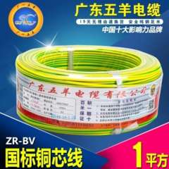 批发广东五羊电线电缆阻燃ZR-BV1平方家装电线 | 单皮单支