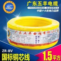 批发广东五羊电线电缆阻燃ZR-BV1.5平方家装电线 | 单皮单支