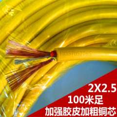 紫铜牛筋电线黄色加粗2X2.5防冻插板线电源线工地拖线护套线100米