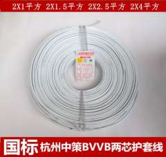 批发杭州永通中策国标2X2.5平方护套线 | 家用电线2芯空调BVVB铜芯