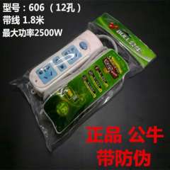 批发带防伪可查公牛插座插排接线板电源移动带线1.8米15孔插座606
