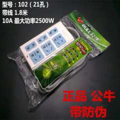批发带防伪可查公牛插座插排接线板电源移动21孔带线1.8米插座102