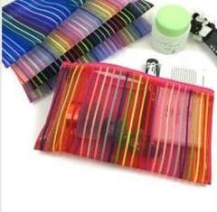 2506 超极漂亮 | 七彩线条透明化妆包 | 收纳袋 | 手拿包 | 零用包