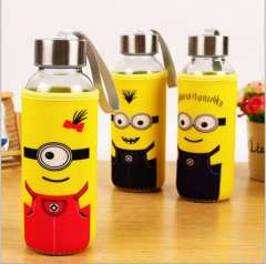 爆款卡通创意布套玻璃杯便携防漏透明情侣杯防烫杯子布套杯