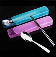 2492-7韩式便携餐具套装不锈钢勺子筷子盒上班旅游两件套
