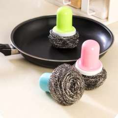 创意厨房带手柄钢丝球可换刷头洗碗刷 | 强力去污圆形锅刷家务刷子