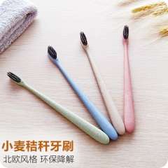 环保小麦秸秆细软毛牙刷 | 便携清洁牙齿竹炭牙刷旅行情侣成人牙刷