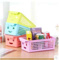 批发 | 新款创意可爱笑脸塑料长方形储物筐 | 厨房浴室桌面杂物收纳筐