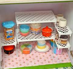 厨房多用可叠加多层橱柜内置物架折叠桌面收纳分层塑料整理储物架
