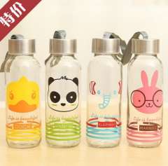 可爱卡通玻璃杯创意玻璃杯透明带盖学生水杯花茶杯便携车载杯268g