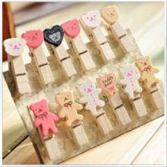 2875 韩国可爱彩绘小熊木夹子照片墙夹子麻绳套装12个装 32g