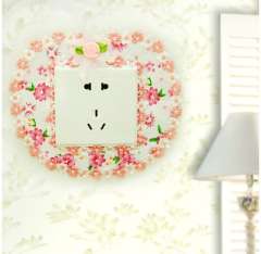2323 粉嫩田园小花布艺开关贴蕾丝开关套开关防尘罩钩爱心