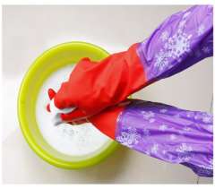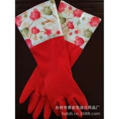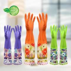 【厂家直销】超长50CM家用收口型花袖绒里清洁手套均码 | 乳胶手套