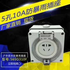 特价户外防暴雨插座新国标二三插5孔10A防水插座明装 56SO310F