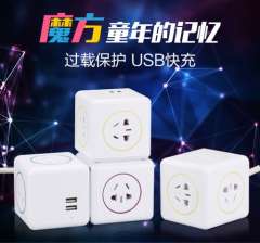 批发创意立式插座3层多功能魔方排插带USB电源插板防雷拖线板插座