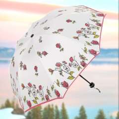 产地货源新款淡雅百合花雨伞 | 防紫外线黑胶折叠伞 | 防晒晴雨伞