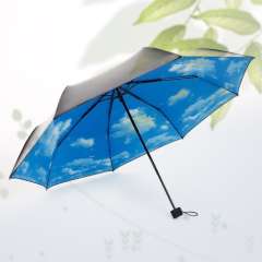 创意黑胶蓝天白云折叠伞 | 全遮光防紫外线晴雨伞 | 超防晒遮阳伞