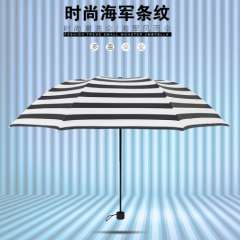 2016新款海军风条纹黑胶雨伞 | 防紫外线三折晴雨伞 | 遮阳伞