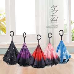 厂家直销 | 夏日新款c型手柄反向伞 | 双层免持遮阳伞 | 防紫外线太阳伞