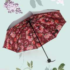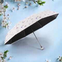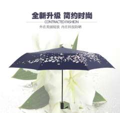 产地货源新款高雅樱花雨伞 | 防强紫外线黑胶三折叠伞 | 防晒晴雨伞