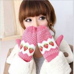 新款可爱草莓手套 | 保暖手套加厚毛线 | 运动骑行针织手套批发