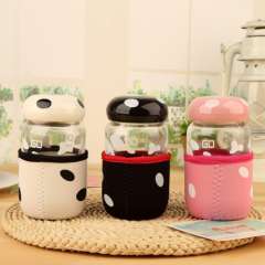创意蘑菇透明玻璃杯 | 可爱卡通便携式车载水杯带布套茶漏 | 厂家直销