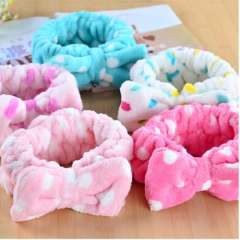 韩国可爱公主波点蝴蝶结洗脸化妆 | 珊瑚绒女士束发带 | 加宽包头巾